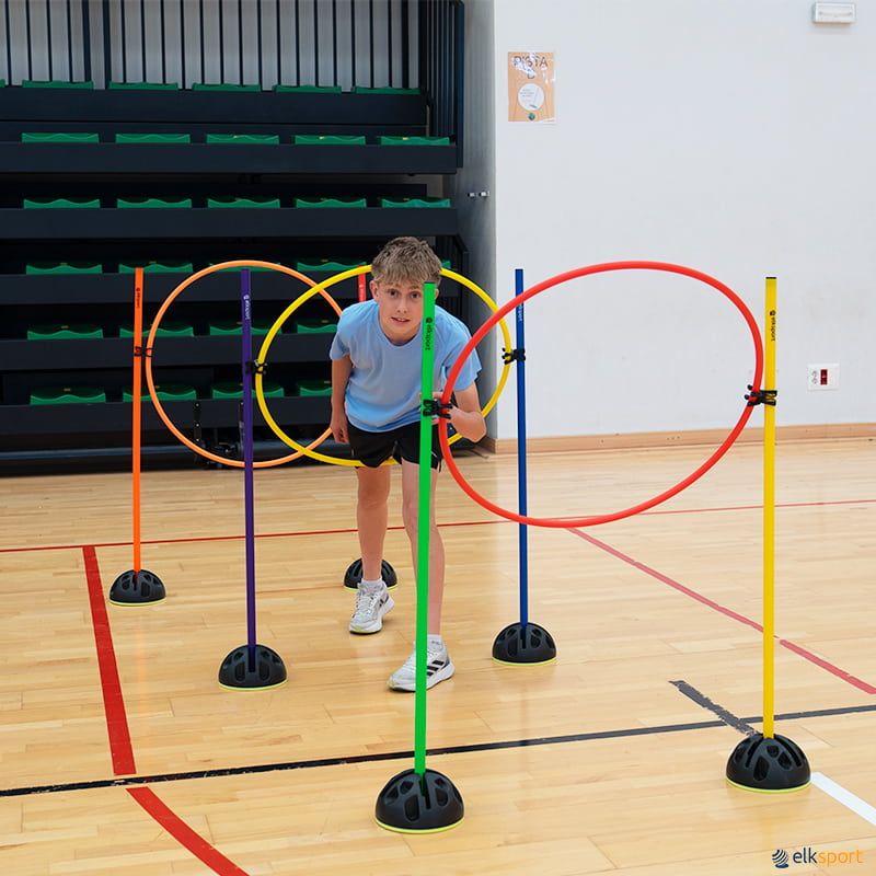 Transforma as tuas sessões de Educação Física com este prático conjunto de bases, varas e aros, ideal para criar circuitos de agilidade, coordenação e trabalho em equipa. Concebido para ser funcional, dinâmico e adaptável. Este conjunto permite configurar múltiplos percursos e exercícios, promovendo a participação ativa e o desenvolvimento das capacidades motoras dos alunos de todas as idades. Seja para exercícios individuais ou dinâmicas de grupo, traz versatilidade e motivação a cada aula.