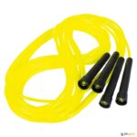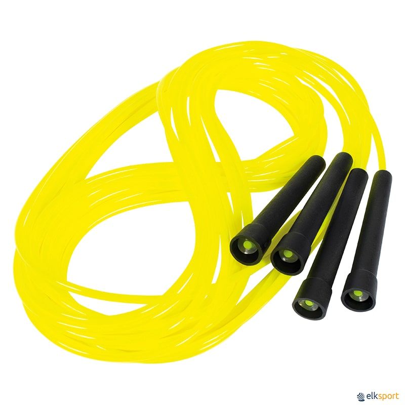 Conjunto de 2 cordas de rotação rápida com cabos de plástico em cores vibrantes. Ideais para o salto de dupla corda, um jogo dinâmico e popular em que duas cordas longas rodam em direções opostas e uma ou mais pessoas saltam simultaneamente. Uma atividade fantástica para desenvolver a resistência, a agilidade e a coordenação.
