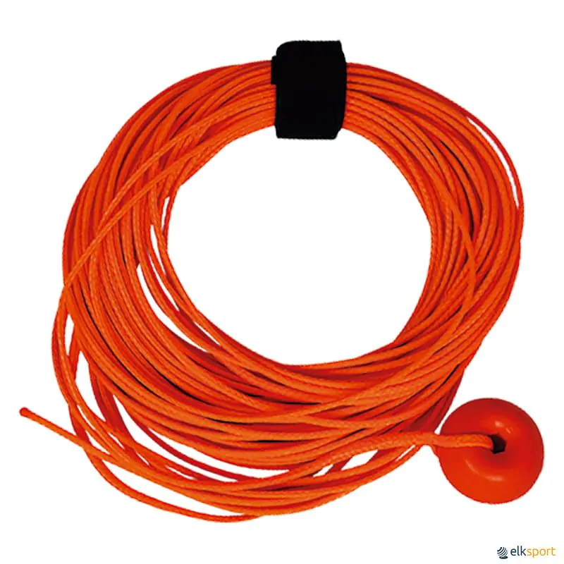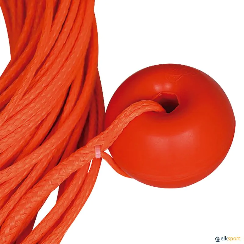 Corda flutuante de polietileno de 6 mm de diâmetro e cor de laranja. Incluí 1 flutuador Donut vermelho numa das extremidades que se une à boia salva-vidas para facilitar o resgate.