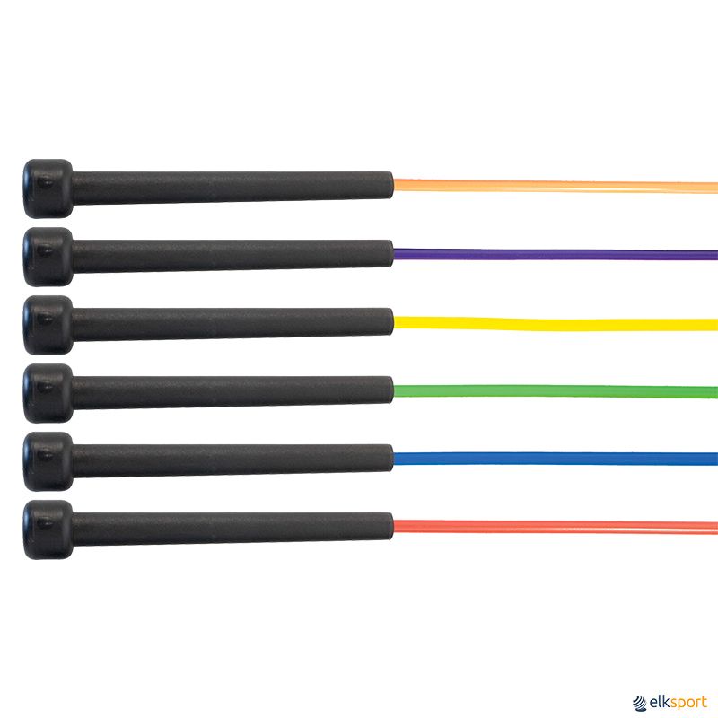 As cordas possuem um acessório especial dentro do cabo que permite ao utilizador ajustar facilmente o comprimento da corda sem necessidade de a cortar. Resistentes aos saltos em praticamente qualquer superfície, tanto em interior como em exterior. Disponíveis em 6 cores para uma organização ideal. Os cabos ergonómicos, para maior conforto e aderência, são fabricados em plástico moldado numa só peça, com uma espessura superior à de outros modelos, garantindo resistência mesmo em uso intensivo. Fáceis de segurar, oferecem uma estabilidade superior em qualquer nível de habilidade.