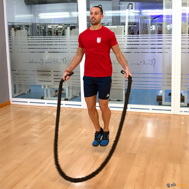 A corda funcional para saltar permite combinar o treino de força e o treino cardiovascular. Com esta corda, é possível realizar ambos os tipos de treino num só, uma vez que o seu comprimento e peso permitem saltar com ela. Fabricada com o mesmo material das cordas funcionais, possui uma fita protetora nas extremidades para evitar que se desfie e é revestida com uma capa protetora de nylon que a protege do desgaste e da abrasão.