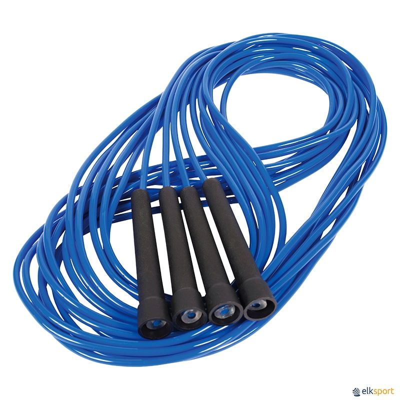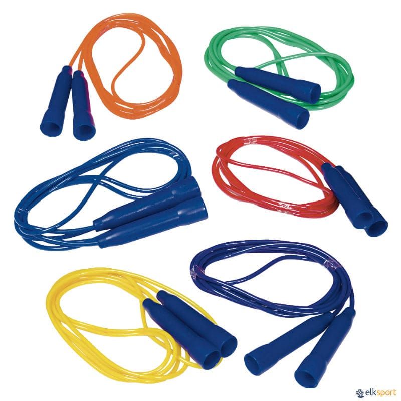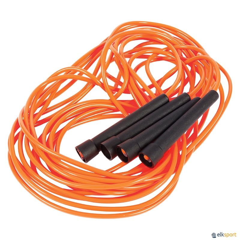 Conjunto de 2 cordas de rotação rápida com cabos de plástico em cores vibrantes. Ideais para o salto de dupla corda, um jogo dinâmico e popular em que duas cordas longas rodam em direções opostas e uma ou mais pessoas saltam simultaneamente. Uma atividade fantástica para desenvolver a resistência, a agilidade e a coordenação.