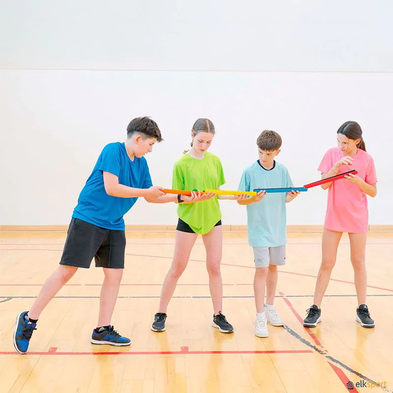 Os skis cooperativos permitem coordenar o esforço de 5 elementos (crianças ou adultos) que caminham em simultâneo. A diferença destes skis para outros em madeira ou de material rígido, tem a ver com o fato de estes serem maleáveis e podem se guardar e transportar muito facilmente. São fabricados em tela de alta qualidade e munidos de 5 pares de cordas para controlar o movimento. Nas pontas, existem uns conectores para ligar mais skis uns aos outros, podendo assim coordenar e cooperar com 10 pessoas.