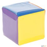 Dado fabricado em espuma e revestido com vinil de grande resistência, proporcionando muita diversão, elevada versatilidade e participação ativa. Cada face do dado possui uma janela de vinil transparente que funciona como bolso, permitindo inserir cartões (até 10 x 15 cm) com instruções específicas de movimento ou atividade. Cartões não incluídos.