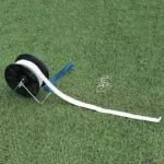 03 Enrolador: bobina para transporte e armazenamento de bandas de delimitação, cordas etc. Fabricado em PVC com estrutura em tubo metálico.