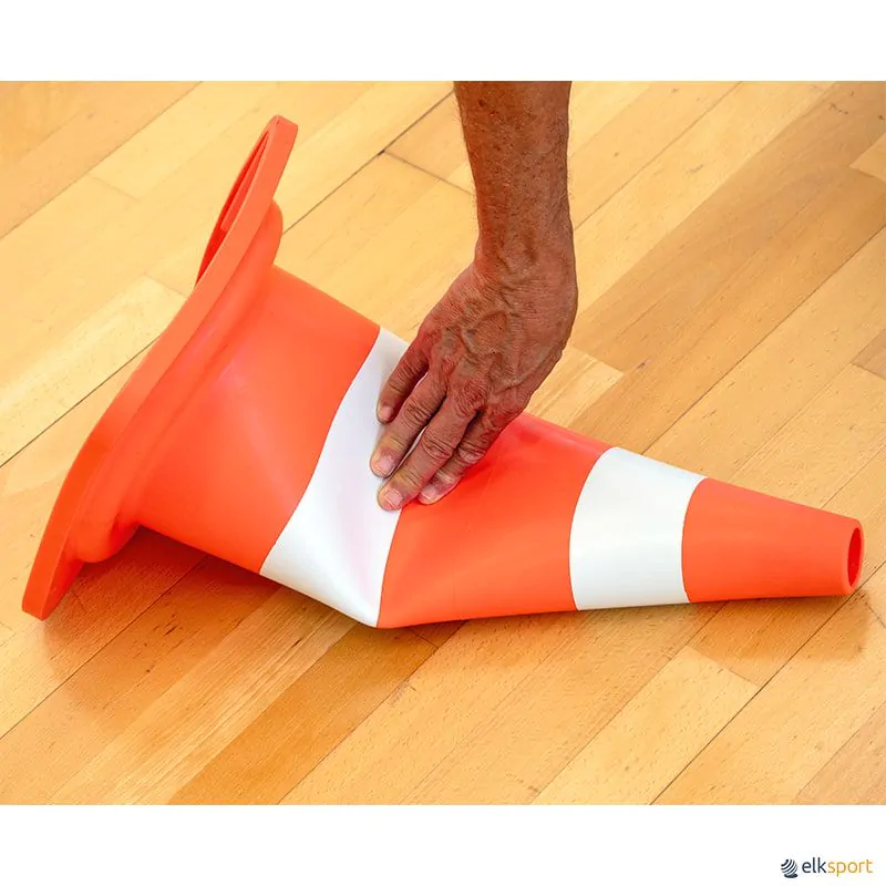 Este cone de vinil é altamente visível e extremamente útil. Quando um jogador o pisa ou colide com ele, este cone retorna à sua forma original em segundos, graças a uma excelente combinação de flexibilidade e durabilidade. O vinil garante que o cone dure mais do que outros cones de plástico, mesmo após a exposição prolongada ao vento, sol e chuva. Sua base é projetada para manter o cone em posição vertical, mesmo com vento forte ou após contato leve. Sua cor laranja e listas brancas proporcionam alta visibilidade. São ideais para qualquer tipo de delimitação.
