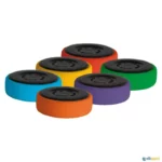 O lote de 6 é composto de 6 discos de Hóquei em 6 cores: amarelo, azul, laranja, vermelho, verde e violeta.