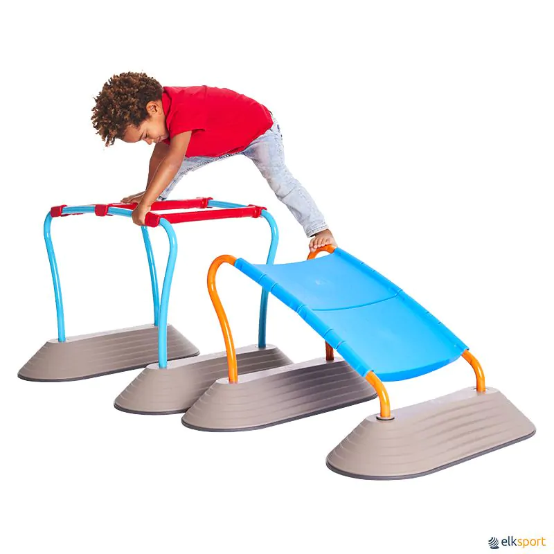 Conjunto para desenvolver e trabalhar habilidades motoras, realizando múltiplo percursos.
