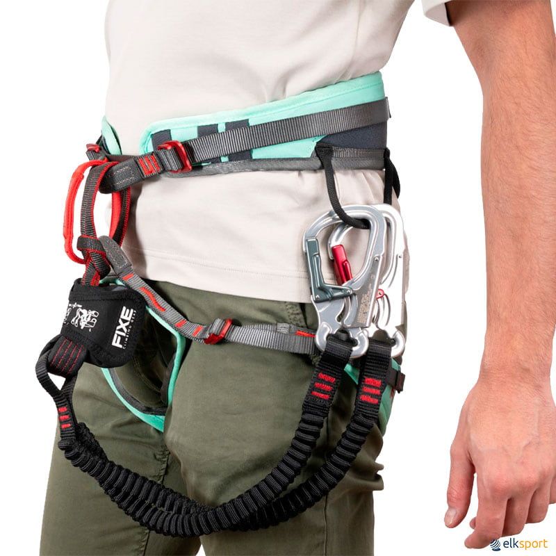 O primeiro dissipador de via ferrata com sistema Cinchless,um ajuste mais natural e direto. O seu inovador sistema Cinchless, patenteado pela Fixe, liga o dissipador ao arnês sem o comprimir, reduzindo o efeito de pêndulo e deixando o anel ventral livre para maior versatilidade. Mais compacto e leve, facilita as manobras e proporciona maior conforto para enfrentar qualquer via ferrata, parques de aventura ou formações.