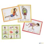 Diversão garantida convidando os alunos a reproduzir as posturas de yoga ilustradas nas fichas e a concentrarem-se. Esta é uma excelente ferramenta para professores e instrutores, sendo as fichas muito visuais e essenciais para mostrar às crianças a postura que devem trabalhar. Na frente de cada ficha é apresentada a postura e nome, e no verso a descrição da postura em 4 idiomas (inglês, francês, alemão e espanhol).