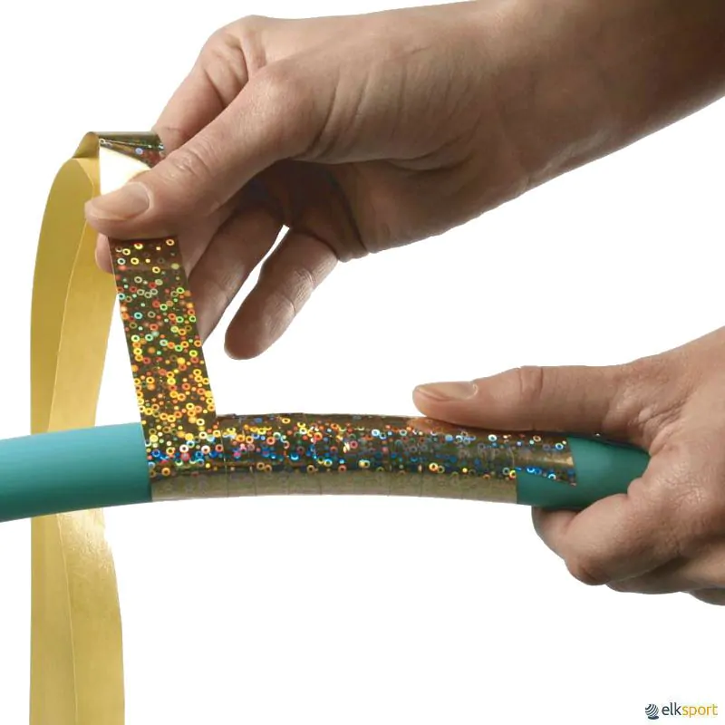 Fita modelo purpurina para decoração de arcos de ginástica rítmica. Cor OURO.