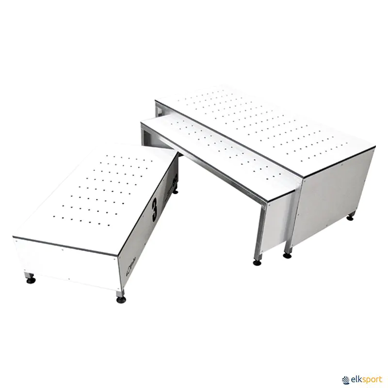 Ver também PÓDIO EMPILHÁVEL EM FIBRA DE VIDRO ou PÓDIO EMPILHÁVEL METÁLICO.