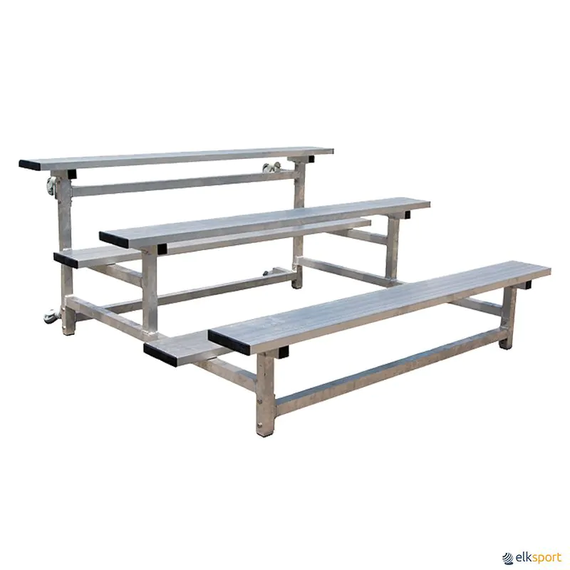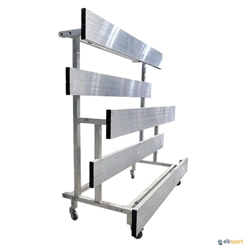 Fabricada totalmente em alumínio, cada uma das plataformas possui superfície antiderrapante para maior segurança. Está equipada com rodas giratórias, com e sem travão, para facilitar o transporte e armazenamento.