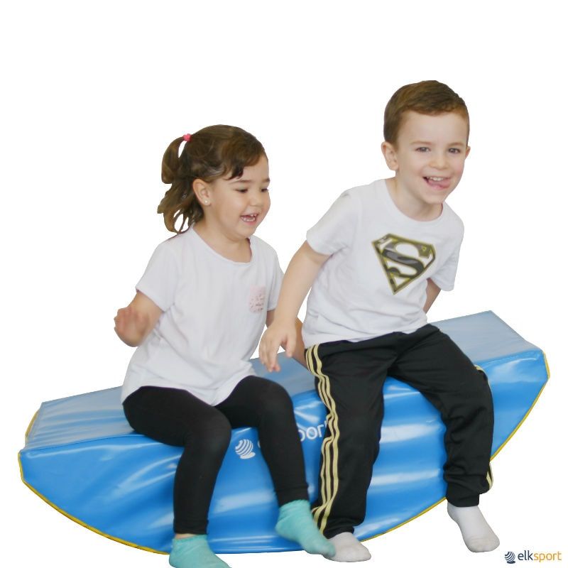 Forma geométrica de espuma forrada, em forma de baloiço.