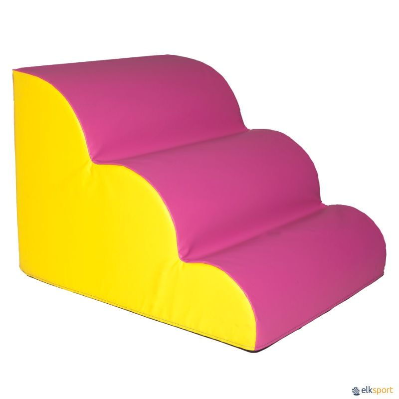 Escada ondular em espuma forrada, para jogos de psicomotricidade. Pode ser usada com outras formas geométricas e formar diferentes combinações.