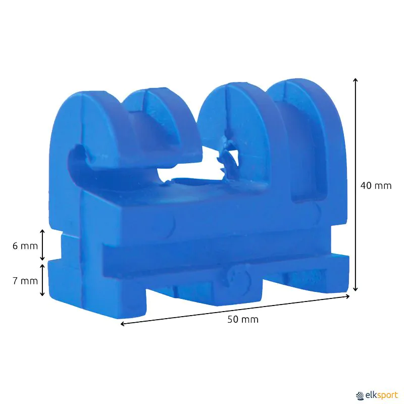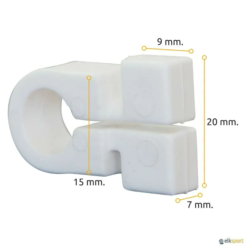 Ganchos fabricados com entrada dupla, com os quais se obtém uma perfeita fixação da rede. Para balizas com ranhura de 8 e 10mm. Para outros tipos de balizas pode ser aparafusado no poste. Inclui parafuso de fixação.