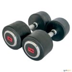 Haltere com pega ergonómica e tratamento em crómio para maior durabilidade e melhor aderência. Este haltere é ideal para exercícios de força tanto em ginásios como em casa. Graças ao seu revestimento em borracha, não danifica o chão nem produz ruído.