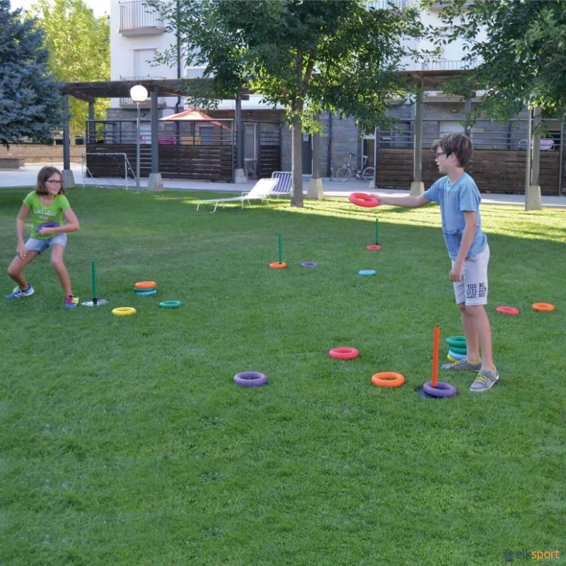 Uma atividade divertida, tanto para outdoor como indoor. Com umas bases e um bastão estável em borracha, o objetivo será tentar colocar os anéis nesse bastão e ver qual a equipa que consegue colocar mais. Caso queiram, há anéis que podem valer o dobro ou o triplo, depende da imaginação de cada um.