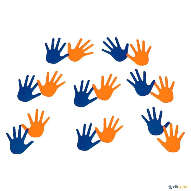 Jogo de mãos composto por: 10 pares, sendo as direitas de cor laranja e as esquerdas de cor azul. Sistema de apoio para orientar os conceitos de direções, movimentos e deslocações das diferentes partes do corpo, assim como para melhorar diversas capacidades básicas. A superfície posterior tem uma textura rugosa que permite manter cada componente no seu lugar.