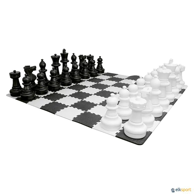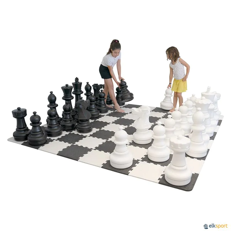 Tabuleiro de damas ou xadrez gigante composto por 64 peças de encaixar, tipo puzzle em espuma EVA, de 29 cm de lado.