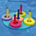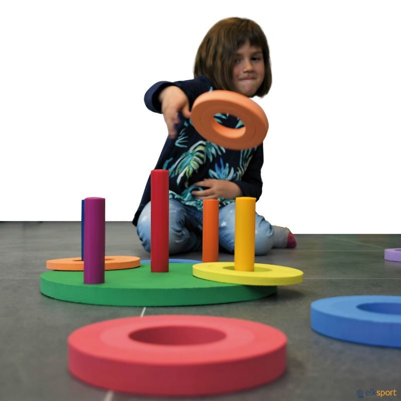 Um novo jogo de lançamento, perfeito para trabalhar a precisão no arremesso, com tripla dificuldade. As argolas de dois tamanhos podem ser unidas concentricamente para criar uma progressão na dificuldade do lançamento: argola grande, argolas unidas e argola pequena. O jogo flutua e pode ser utilizado em atividades em meio aquático.