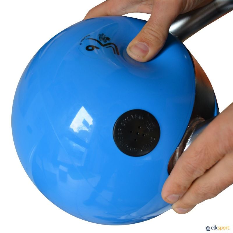 Fabricada com material macio e de alta tecnologia, esta kettlebell está equipada com duas válvulas especiais que permitem a entrada e saída de ar. Os grânulos no interior da bola adaptam-se à força do ar, garantindo uma emissão ótima durante a execução do exercício. Equipada com uma pega de aço segundo medidas oficiais. Graças ao seu material supermacio, oferece máxima segurança tanto para atletas iniciantes como para profissionais, bem como para o mobiliário e pavimentos de ginásios e lares. O teste acústico realizado com esta kettlebell indica valores mínimos de som no impacto com o chão, tanto ao nível do ouvido como do pavimento (18,87 dB Trial face a 188,72 dB de outros fabricantes), o que permite uma maior concentração na execução do exercício em comparação com as kettlebells clássicas.