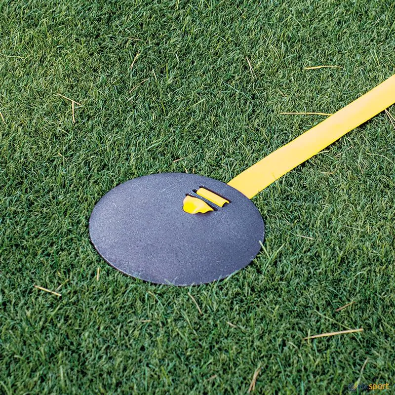 Base lastrada que permite estabilizar as bandas elásticas delimitadoras, podendo criar diferentes parcelas e áreas de jogo em pavilhões, terrenos de jogo, recreios etc. validas para qualquer superfície tanto no interior como exterior: relva, areia, piso sintético e de madeira. Pode ser combinado com a BANDA DELIMITADORA S10076 e BANDA DELIMITADORA EXTENSÍVEL D10433, de vários comprimentos.