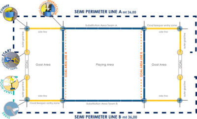 7 – Repita todos estes passos para montar a ‘goal area line B’ do outro lado do campo de andebol.