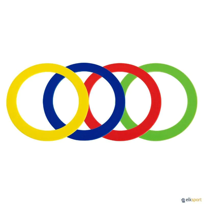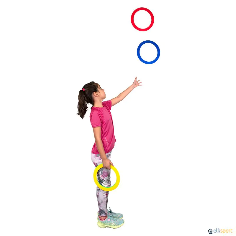 Anéis de malabarismo de plástico, com a borda rematada para maior segurança e conforto. Em 4 cores: amarelo, azul, vermelho e verde.
