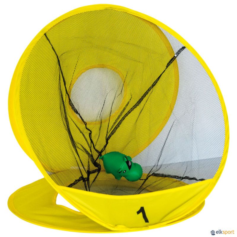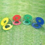 Alvos para lançamentos fabricados em fibra de vidro, tecido de poliéster e rede de poliéster. Uma vez abertos, os alvos formam 3 lados, cada um com um nível de dificuldade diferente. Ideais para trabalhar várias habilidades de precisão nos lançamentos, com saquinhos, bolas, bolas de golfe, etc. Com design pop-up, abrem-se e fecham-se em segundos, sendo muito fáceis de arrumar e prontos a usar rapidamente. Adequados tanto para utilização no interior como no exterior. Incluem espia para fixação na relva ou terra, e saco para arrumação e transporte.· Conjunto composto por: 4 alvos numerados em 4 cores (amarelo, azul, vermelho e verde)