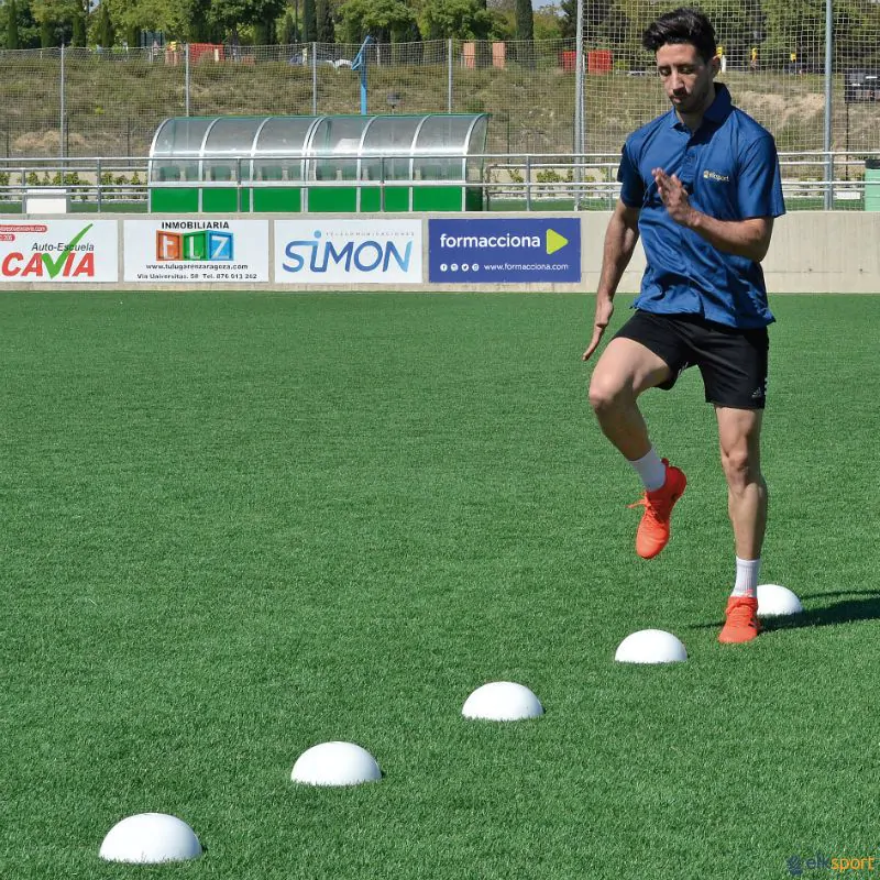 Lote de 40 semiesferas para delimitar zonas de trabalho específico. Muito utilizado por equipas de futebol, rugby e outros que utilizem grandes espaços desportivos. Em lote de 40 (10 de cada cor) e suporte em T para transporte e armazenamento.