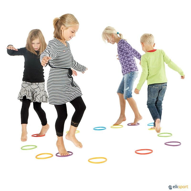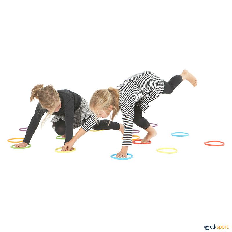 Estes pequenos arcos, com diversas cores atraem as crianças de todas as idades. Podem usar-se para uma infinidade de atividades, como dançar em círculo, caminhar, pisando o seu interior, com os dedos dos pés, caminhar com elas na cabeça sem as deixar cair, lançar os arcos uns a outros, criar formas, é a vossa imaginação que fixa os limites.