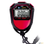 Cronómetro desportivo multifuncional com ecrã LCD e uma linha de grande visibilidade. Com pilha alcalina incluída. Precisão de 1/100 segundos.