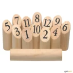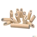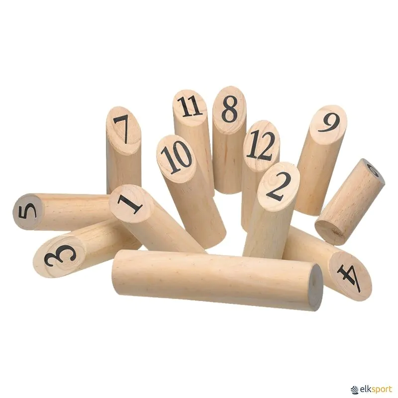 Pinos em madeira de grande qualidade. Recomenda-se o jogo no exterior.