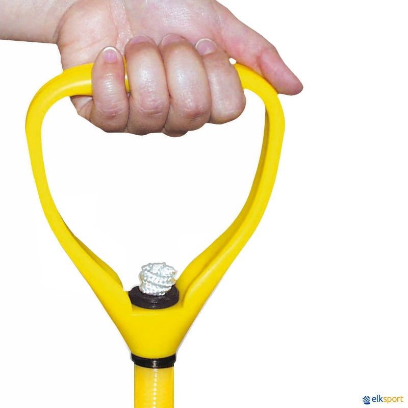 Este elástico é uma alternativa económica às tradicionais barras de atletismo, formado por um elástico com um pequeno saco de areia em cada uma das extremidades. Não é necessário atar o elástico, pois a tensão proporcionada por cada um dos contrapesos mantém o elástico esticado.
