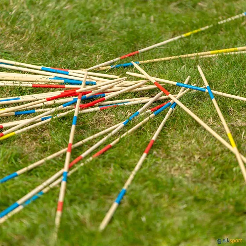 Soltam-se os palitos de bambu sobre uma superfície lisa e retira-se um por um sem mover os restantes. Cada palito tem a sua pontuação.