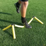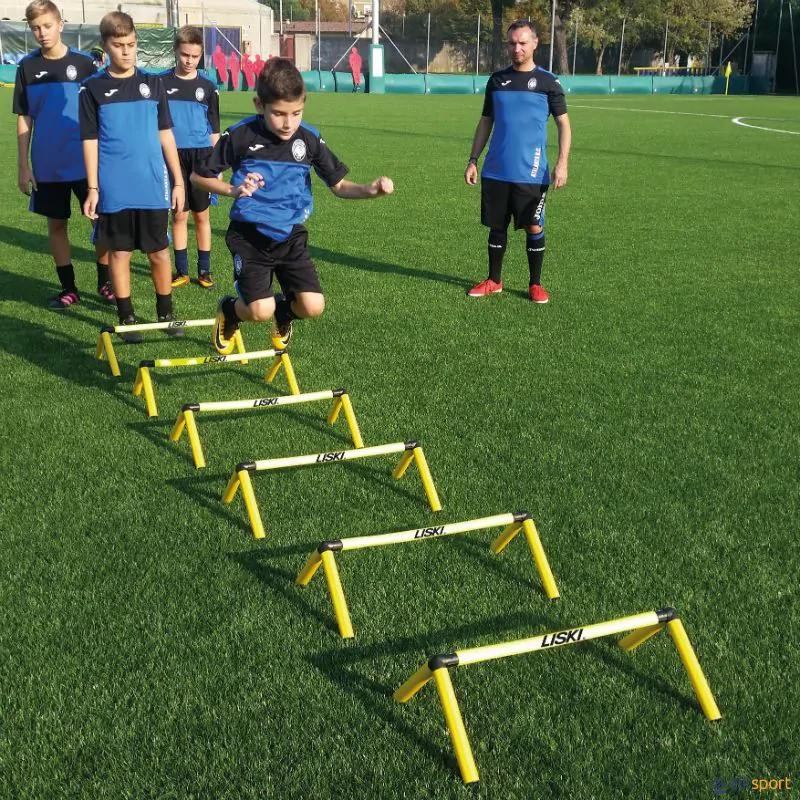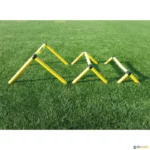 Obstáculos muito seguros graças à barra superior que é flexível quando se pisa e volta à sua forma original.