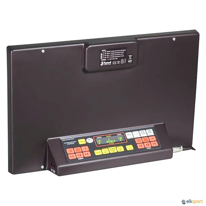 Aprovado pela FIBA nível 3. Tecnologia LED SMT de alta luminosidade dígitos com 20 cm altura, visibilidade a 90 m e ângulo de visão de 150°. A prova de choque da bola de acordo com as normas DIN 18032 e UNI 9554, não requer proteção frontal. Comunicação por rádio. Fácil instalação, inclui suportes para instalá-lo facilmente na parede. A consola de comando permite configurar vários modos de funcionamento de acordo com o desporto escolhido: tempo de jogo e intervalo, conta para a frente ou para trás, indicador de décimas de segundo do o último minuto de jogo, indicador da hora, ...