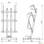 Móvel para armazenar conjuntos de barras e discos Body Pump, compatível com discos de 30 mm de diâmetro. Fabricado em aço de alta resistência com suportes revestidos a plástico para não danificar os pesos.