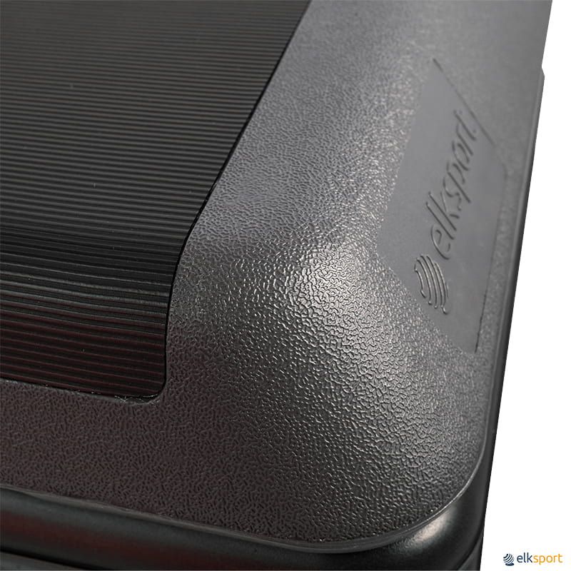 O step profissional conta com uma plataforma de grande estabilidade graças aos seus 8 apoios de borracha que evitam o deslizamento em qualquer superfície. Parte superior antiderrapante para maior segurança nos apoios. Com 4 pés laterais, opcionais, para aumentar a altura do step para 15 ou 20 cm.