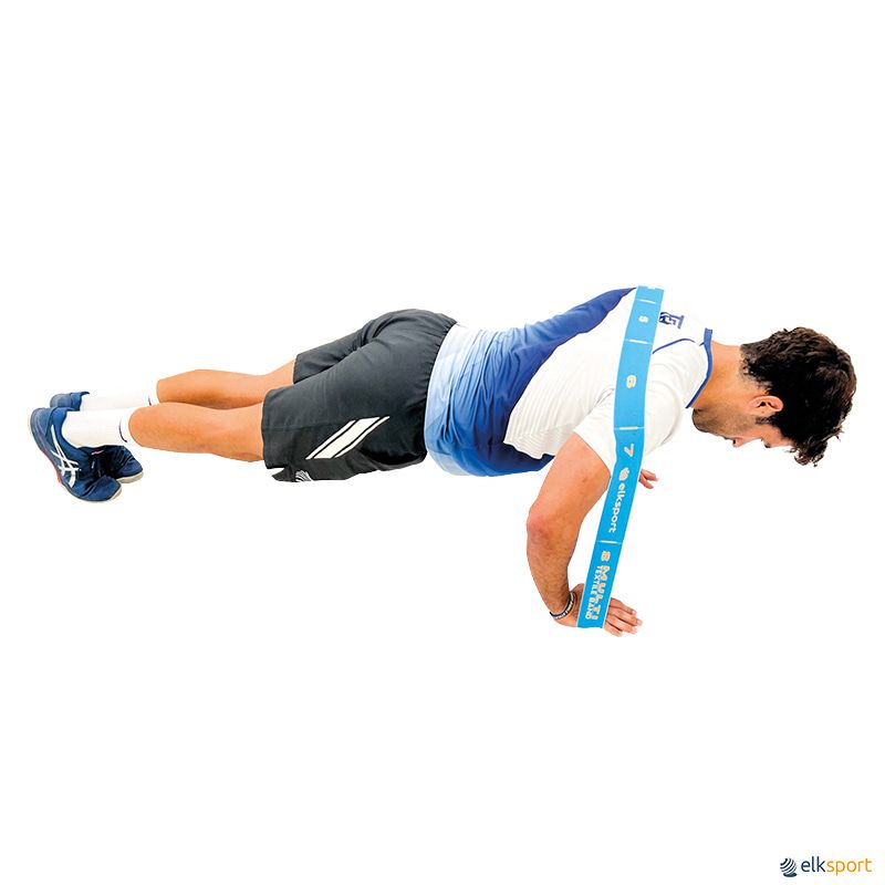 A Multi Textil Band é uma banda elástica dupla, cosida formando 8 secções de pega, para variar a intensidade e amplitude de movimentos nos vários exercícios: abdominais, dorsais, peitorais, entre outros. Oferece a possibilidade de 8 pegas de apoio, conforme o trabalho que se pretenda realizar com as mãos ou os pés, em diferentes intensidades. Os espaços mais largos de 16,5 cm em cada extremidade, permitem inserir as coxas ou aos pés, e as mãos nos 6 apoios centrais. Este pequeno elástico torna os exercícios mais eficientes e atrativos. Ocupa pouco espaço e pode portanto ser levado e utilizado em qualquer lugar. A sua durabilidade e o baixo custo garantem uma excelente relação qualidade/preço. Fabricada com fibras elásticas envolvidas em tecido jacquard, o que proporciona um toque mais agradável do que as bandas de látex. Lavável (máximo 30°). Convém para aulas de grupo tanto no ginásio como na piscina.