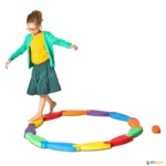 Peças para construção de caminhos de equilíbrio, fabricadas em plástico forte com borracha antiderrapante na base.