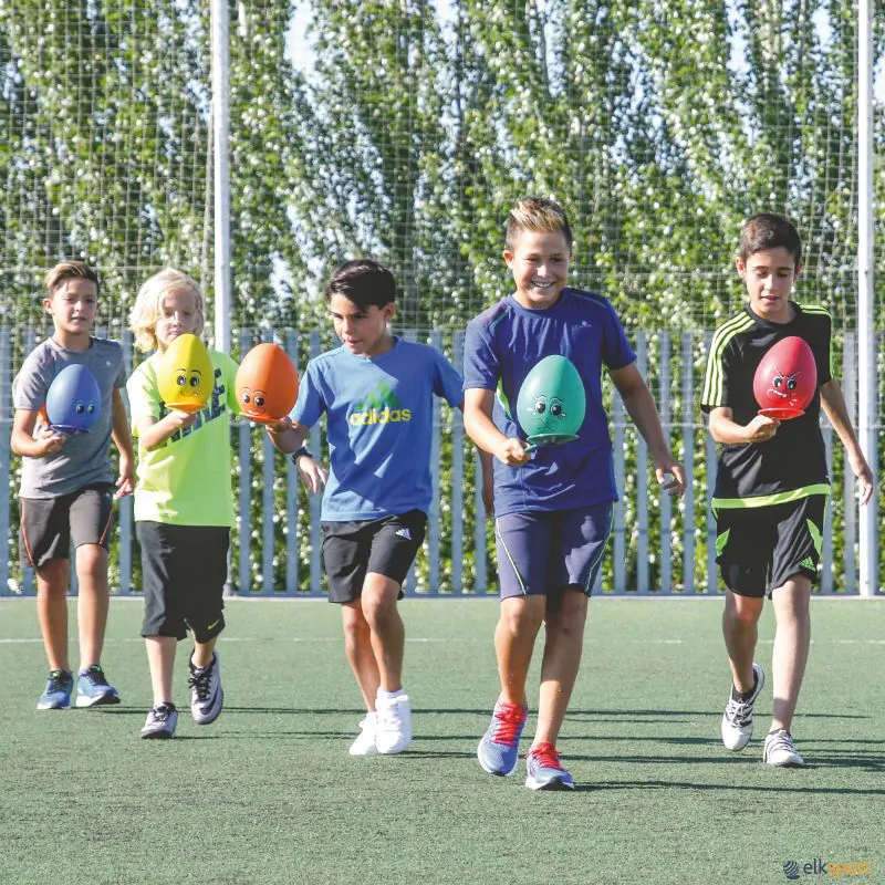 Uma versão mais visual do jogo tradicional de ovos e colheres. Os ovos são fabricados em vinil e podem ser insuflados, pelo que podem ser utilizados como bolas com ressalto imprevisível, ajudando assim a desenvolver as habilidades motoras.