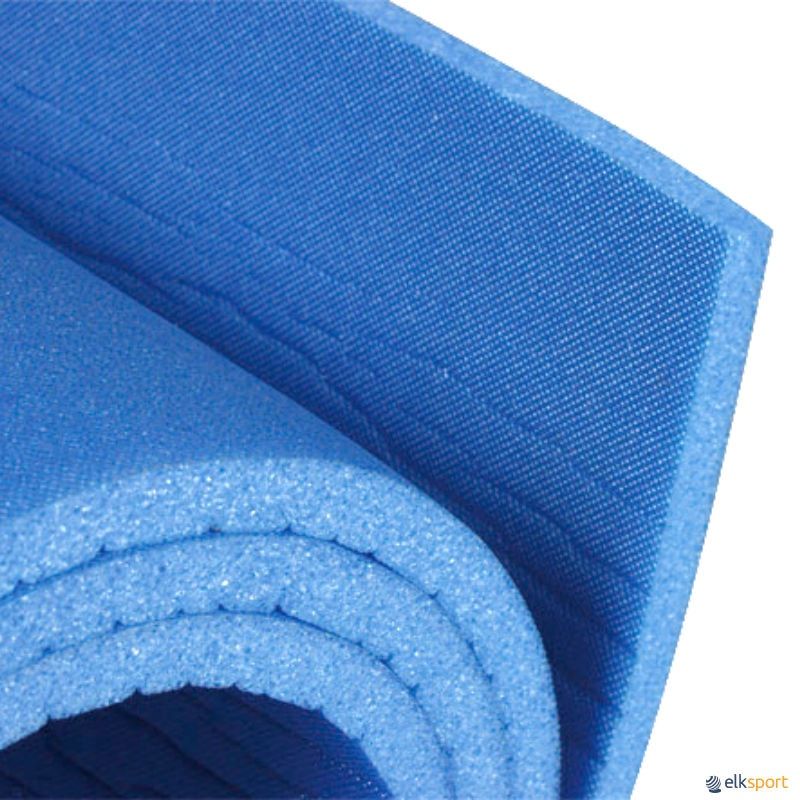 Tapete de fitness fabricado em espuma de alta qualidade, com uma face têxtil que o torna mais higiénico e agradável ao toque. Pode ser lavado com sabão. É dobrado em 4 partes para facilitar a arrumação e possui 2 ilhós para ser pendurado.