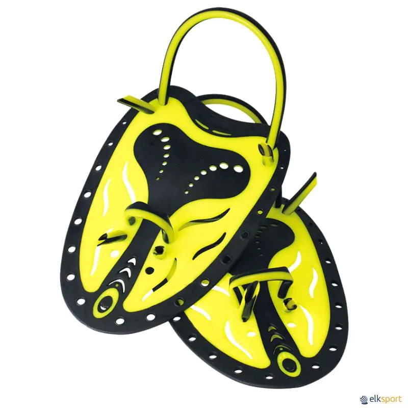 Palas rígidas de forma anatómica. Os ajustes e rebordos em borracha melhoram a estabilidade do movimento na água, contribuindo para tonificação do tronco mais eficiente.