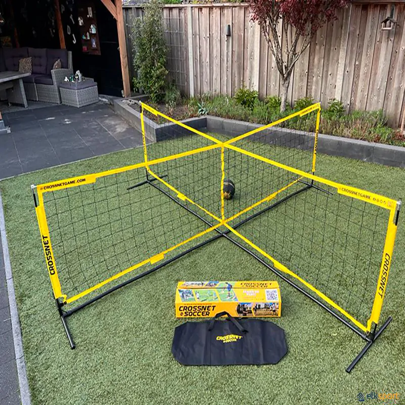 Fantástico sistema de 4 redes montadas em cruz para treino de habilidades de remate, controle e passe para quatro pessoas, garantindo ainda diversão. Monta-se e desmonta-se facilmente em menos de 3 minutos. Inclui uma bolsa resistente para transporte e armazenamento.