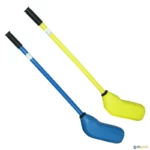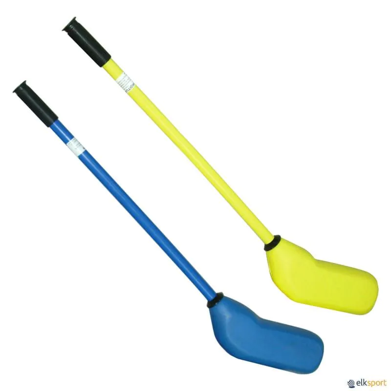 Par de sticks de hóquei super suave (SS) com 1 stick amarelos e outro azul.