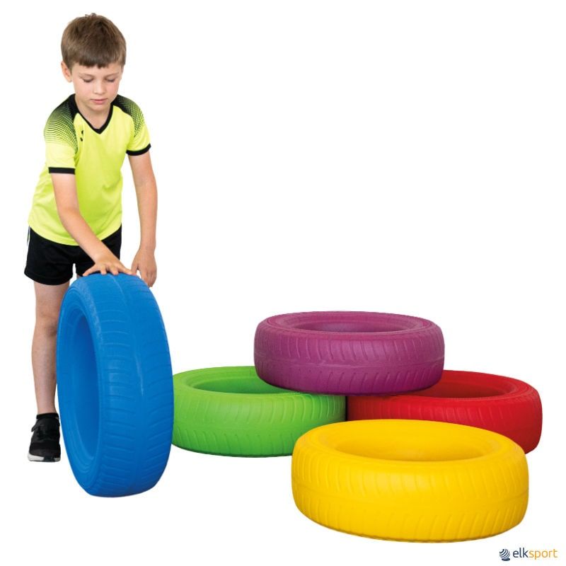 Conjunto de 5 pneus de plástico fabricados de acordo com as normas europeias e adequados para uso infantil, tanto no exterior como no interior. Ideais para promover a motricidade e estimular a imaginação, podem ser utilizados todos juntos em forma de circuito ou separadamente. Fechados na parte interior para evitar lesões ou a acumulação de água. Fabricados em plástico rígido e resistente.