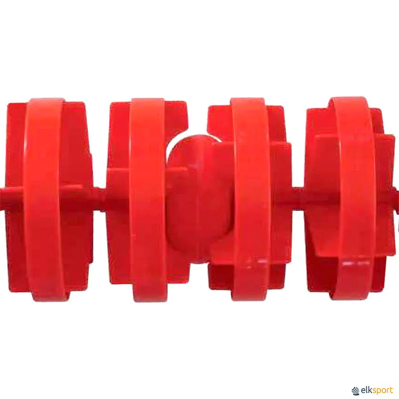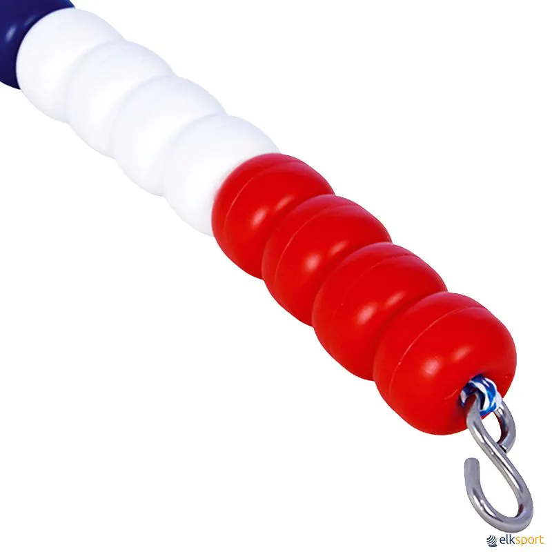 Composta por peças anti-ondas de 150 mm de diâmetro, inclui cabo de aço inox de 4mm AISI 316L, tensor de cabo de aço inoxidável e mola de tensão para pistas flutuantes conforme as normas World Aquatics.