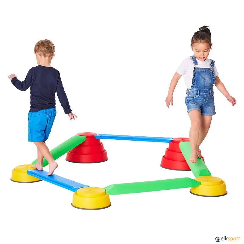 Os componentes podem combinar-se de múltiplas formas, para ampliar o percurso de equilíbrio. O nível de dificuldade pode variar dependendo da idade das crianças, bem como a altura dos cumes 10 ou 24 cm.